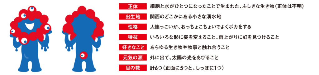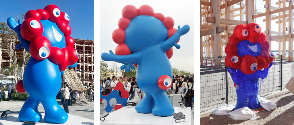いろんな要素が混ざっているようで、ひと目見た瞬間に“ミャクミャクだ”と分かるキャラクターになっていると言えます。