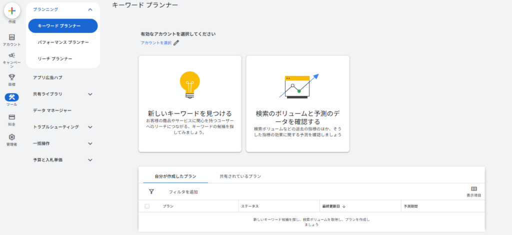 Google広告の管理画面から利用できるGoogle公式の無料ツールで、キーワード選定や広告運用の計画に役立ちます。