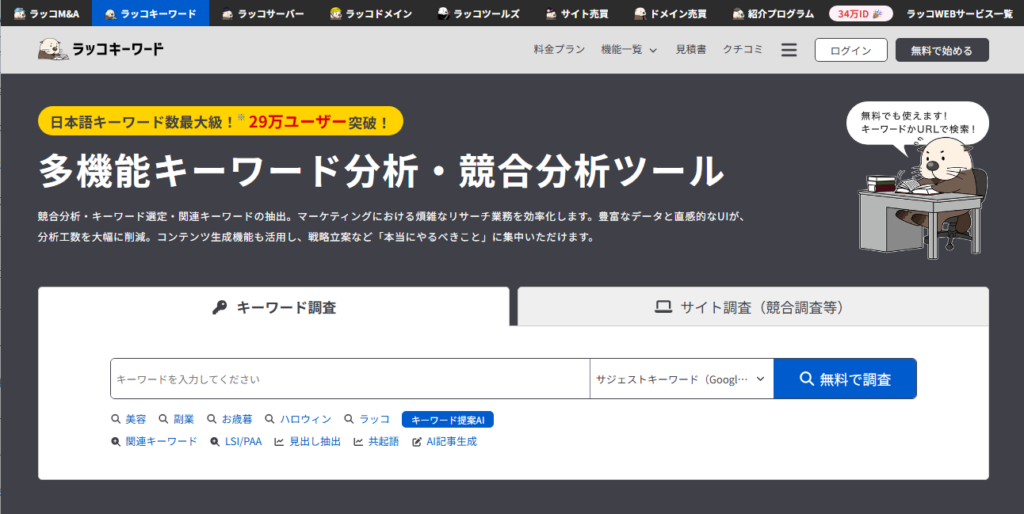 日本国内で広く利用されているキーワードリサーチツールで、有料版と無料版が用意されています。